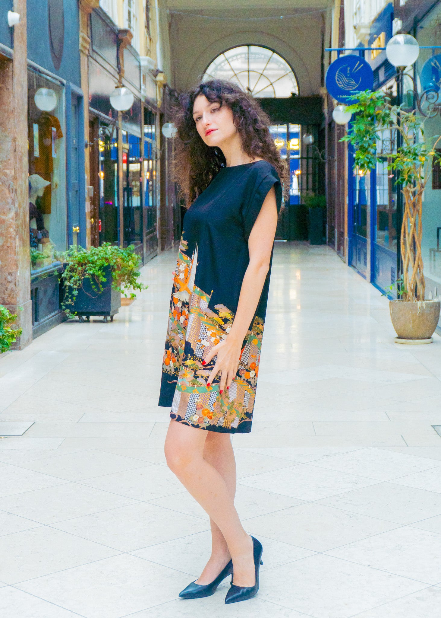 Découvrez cette robe exceptionnelle confectionnée à partir d’un kimono Tomesode japonais traditionnel. L’équilibre entre modernité et héritage textile en fait une pièce à la fois intemporelle et contemporaine.